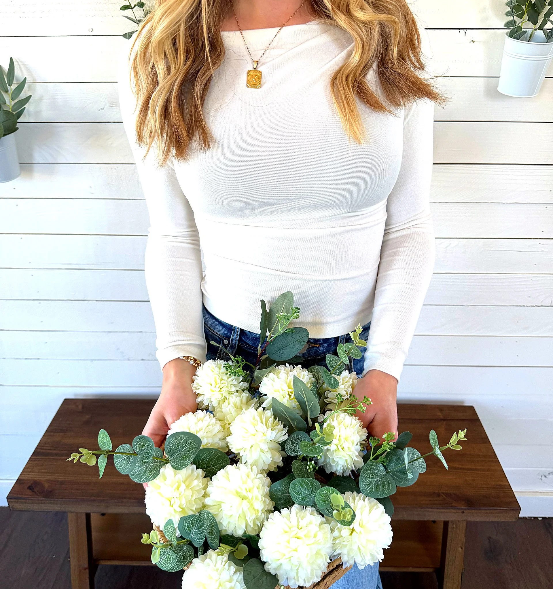 A good top to dress up or down. It has a soft material with a boat neckline. The cream color is perfect to pair with your fun accessories!